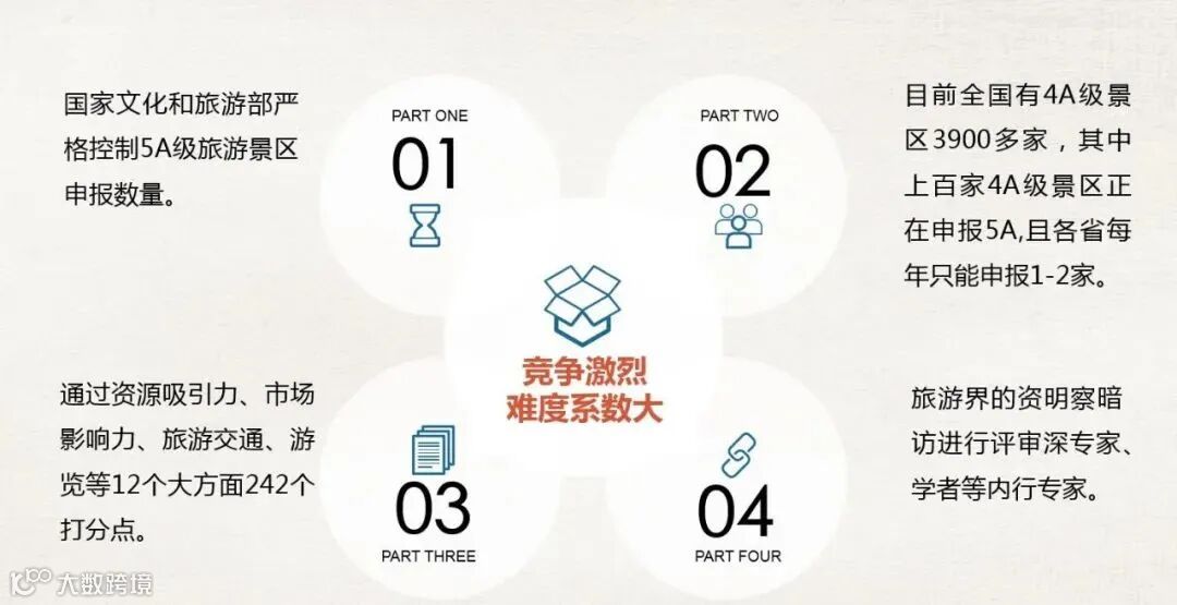 国家5A景区竞争激烈,创建难度大。主要是每年申报数量有限,标准化要求高,全国创建5A景区申报数量多。