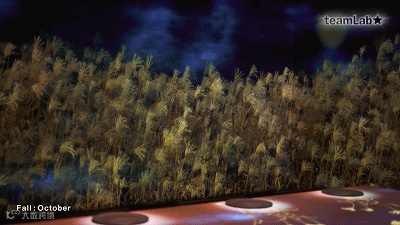 Teamlab创造了一个不断变化的环境,反映日本不断变化的季节。因此,投影也受用餐者的行为影响。如果你保持不动,一只小鸟可能会落在你手上。你突然移动,它会被吓得飞走。