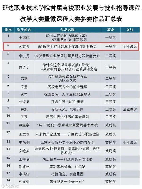 其中,我公司驻校企业教师孙家俊、张宝峰、李年龙老师凭借在企业丰富的实践经验和前瞻性的行业视角,共同完成“5G通信工程师的职业发展与就业指导”并荣获校赛一等奖,彰显了企业教师的卓越实力。这一成绩的取得,不仅是对我司企业教师个人能力的肯定,更是对我们协同育人模式的高度认可。