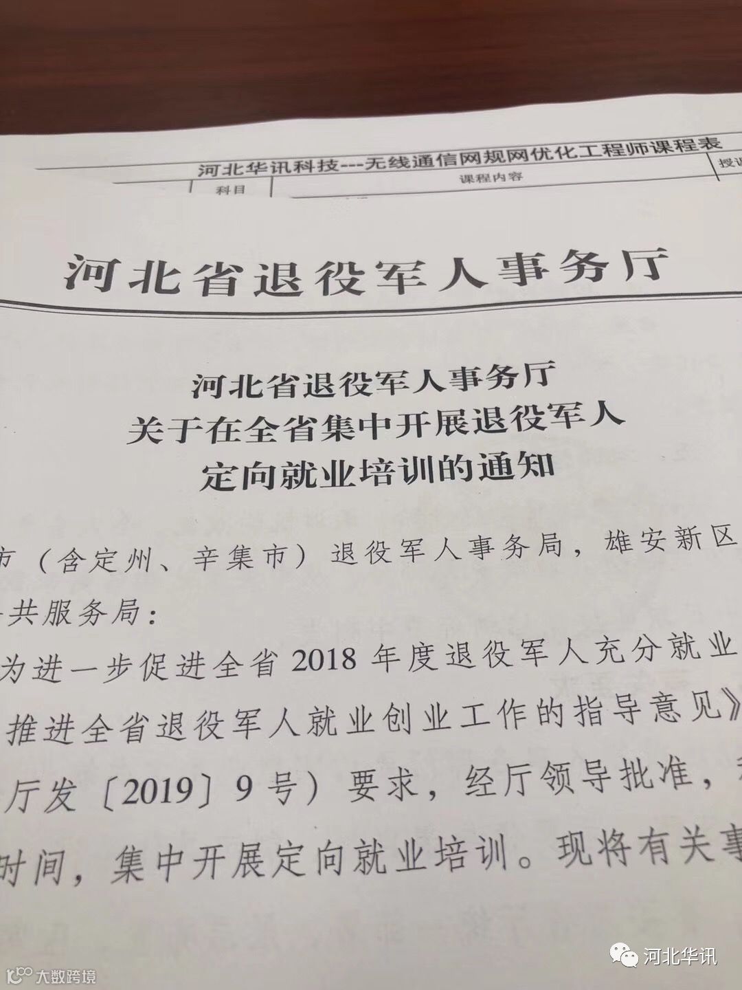 2019年8月,河北省退役军人事务厅开始与河北华讯科技有限公司合作培养通信工程师岗位人才。
