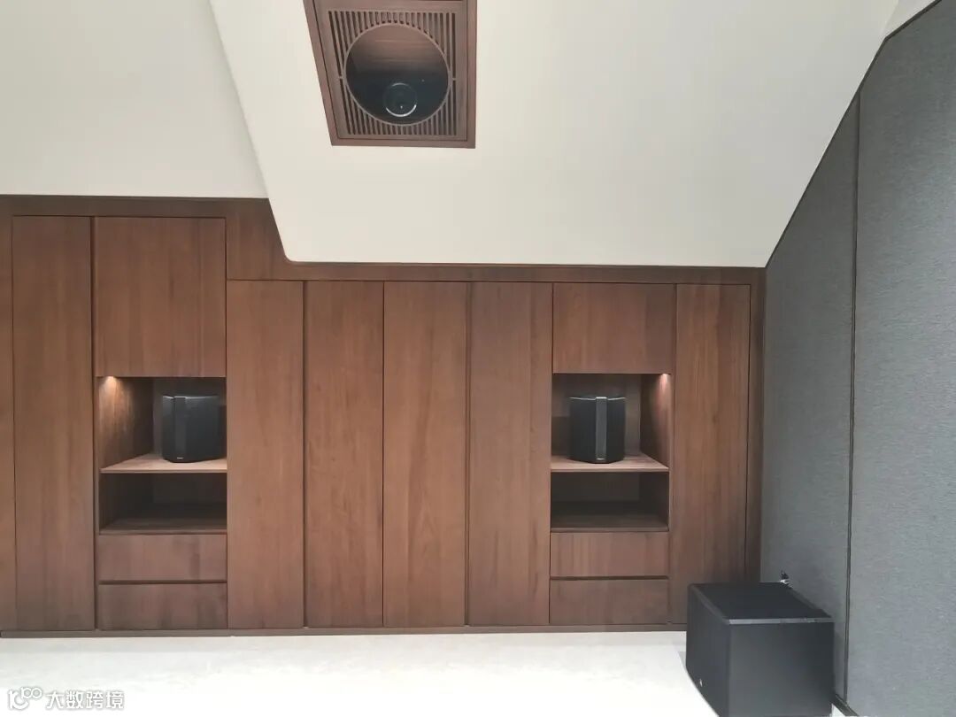 经过调试的别墅影院:快速紧凑的低频表现,宽广的动态范围,每个位置都能聆听到“皇帝位”的音效,对白清晰且准确,精确的声音定位,平滑全高清的声像移动,极具空间感的环绕声场,平衡的音色均实现并全面超越了影院级别,令业主赞不绝口。