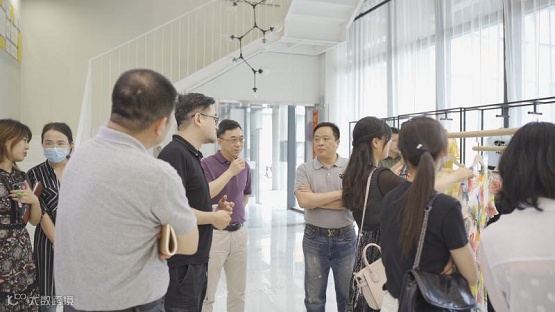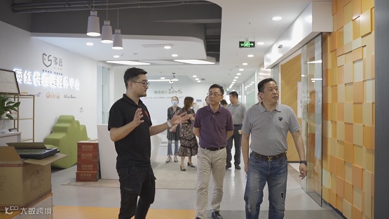 在韩斐的陪同下,政府领导细致的参观、考察了够选基地事业部的展厅、直播间、样板间和品牌直播间等区域。调研过程中,韩斐向领导队伍详尽地介绍了够选公司网红经济的具体业务模式。