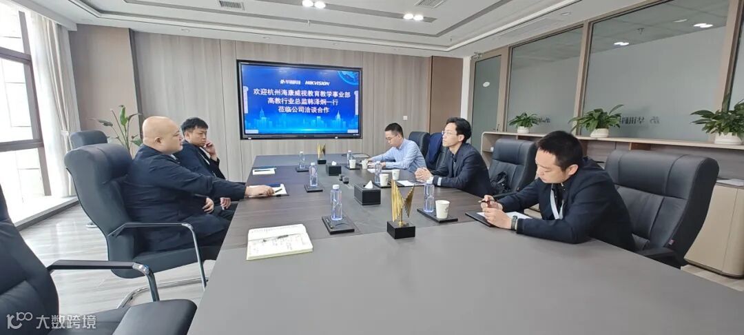 4月8日上午,杭州海康威视数字技术有限公司教育教学事业部高教行业总监韩泽炯一行莅临我公司,与公司总经理雷春阳及各部门负责人共同商讨新领域校企合作的发展策略。