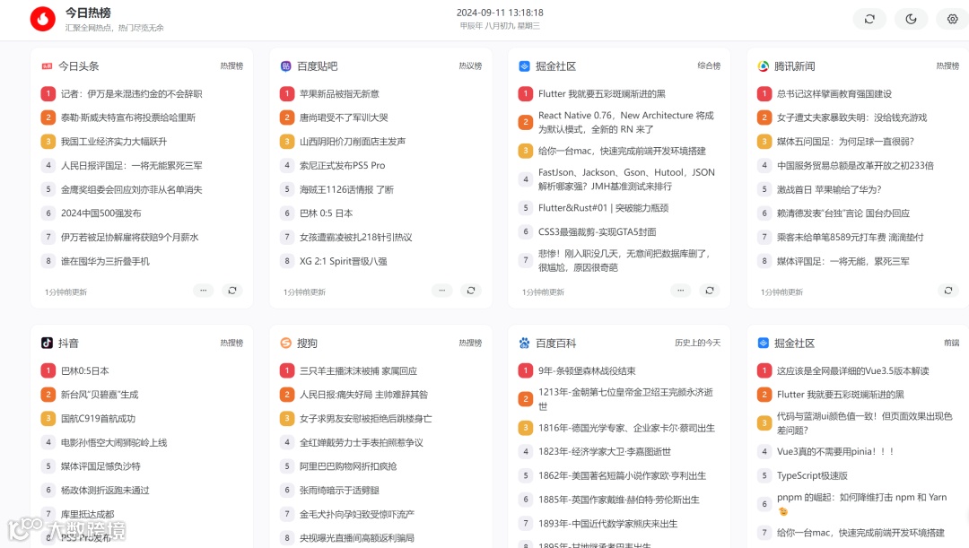 🔥 “今日热榜”,汇聚全平台的即时热门话题。