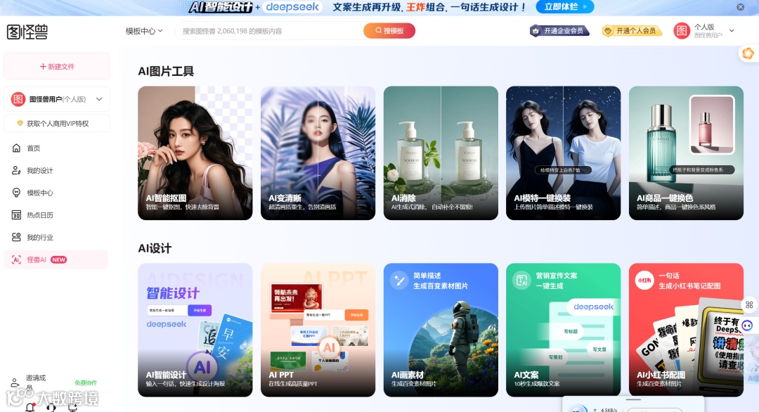 使用场景:对于电商商家来说,图怪兽简直是必备神器!在新品上架时,需要快速制作大量不同尺寸的产品图和宣传图,用图怪兽就能轻松搞定,大大节省了时间和成本。而且,图怪兽还提供了丰富的模板库,即使你没有设计基础,也能轻松做出专业级别的图片 。