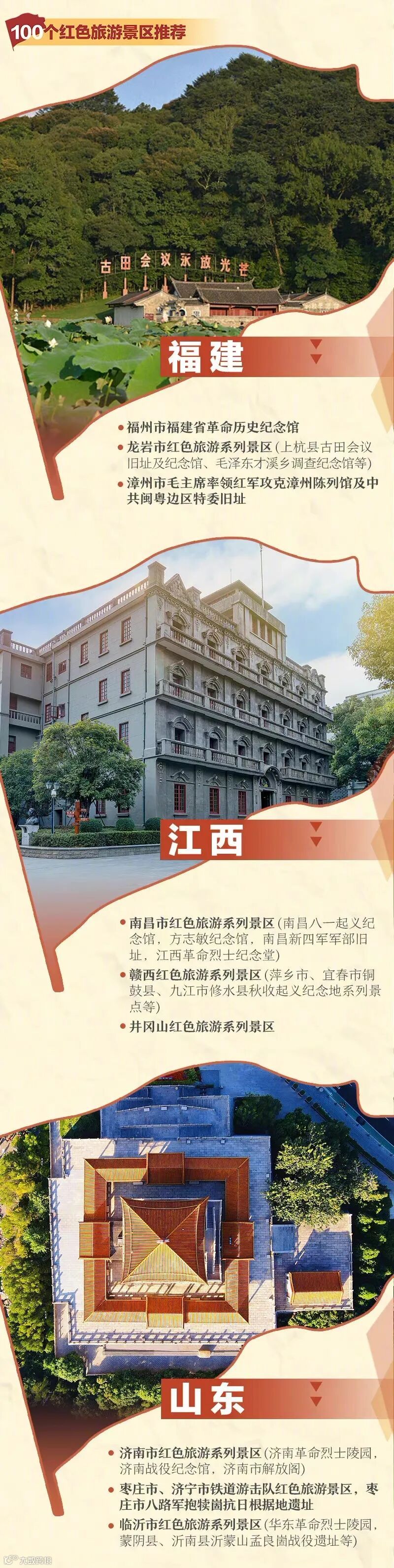 导读:你有出游计划吗?计划前往的城市里,是否也能一并体验红色之旅呢?你还知道哪些值得推荐的红色旅游景区?在中国共产党成立100周年之际,一起探寻红色足迹吧!