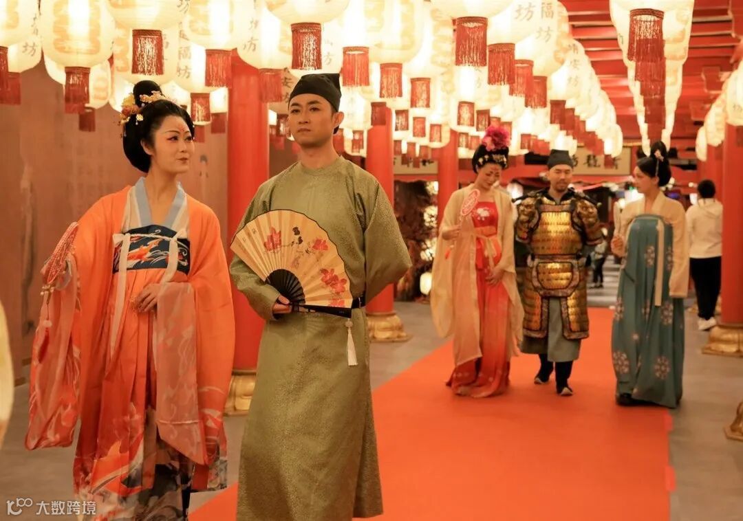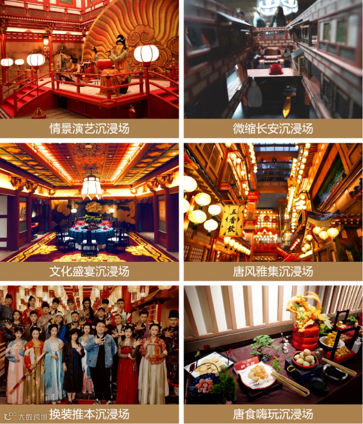 “长安十二时辰”通过影视IP与商业IP融合,多元业态与沉浸式体验结合,以可消费盛唐文化体验为宗旨、以沉浸式文化体验为核心的大型文商旅融合项目,为市民和游客开启了影视与文旅商融合发展的梦幻、穿越之旅。游客可以选取自己喜欢的职业和身份,换上唐服、点染唐妆,深度体验唐朝沉浸式游戏乐趣,感受唐长安市井生活的独特魅力。整个街区随处可见身着唐朝服装的文人墨客、才子佳人、挑担小贩、道士僧侣,还能邂逅剧中的“张小敬”、“李必”、“崔器”等演艺NPC,与他们零距离互动,突破传统景区游览形式,感受浸入式的视觉、听觉、嗅觉等全方位立体体验,让游客充分领略大唐繁华、爱上大唐文化。