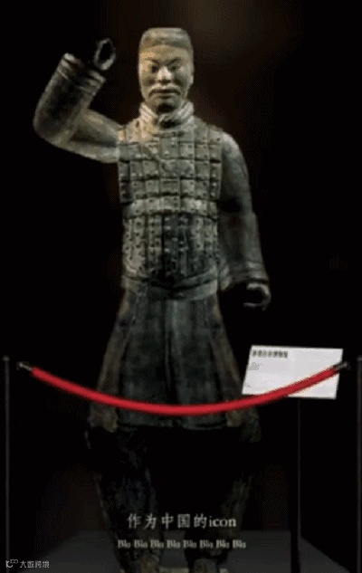 「拍灰舞」和「文物」之间毫不违和,在抖音魔性电音BGM的带动下,这尊文物面无表情地拍拍肩上的尘土,宛如一个没有感情的杀手。