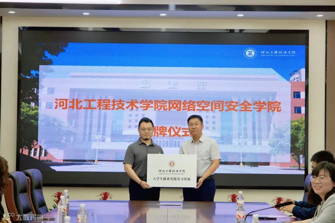 导语:5月21日,公司与河北工程技术学院网络空间安全学院“就业实践实习基地”授牌仪式在学院圆满举行。学院院长赵冬梅、党总支书记,学管副院长樊风彩、学生处处长连婷、教学副院长张波、院招生就业办主任史磊,公司产教融合部苏杰、技术服务部负责人白露出席会议,标志着双方在人才培养、实践教学等领域的合作迈入新阶段。