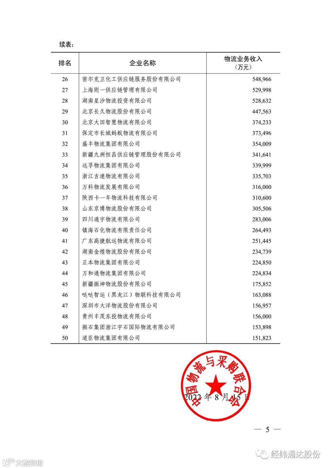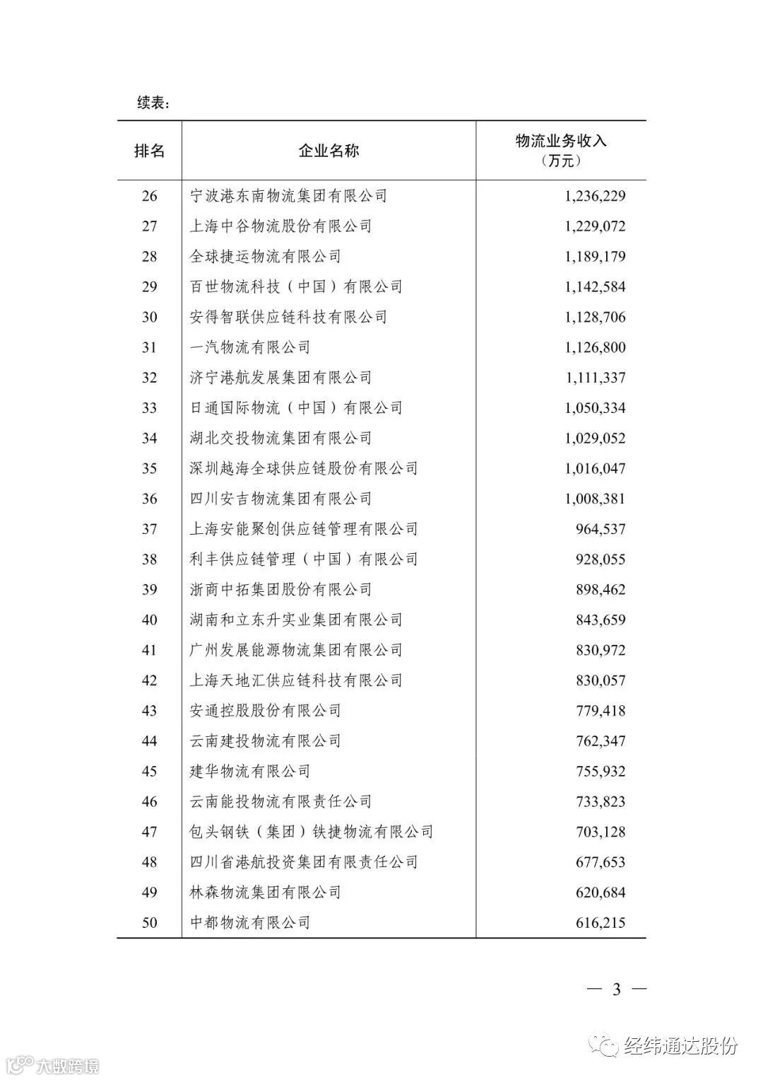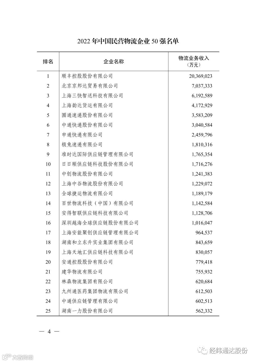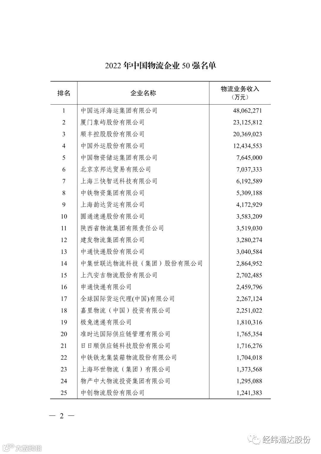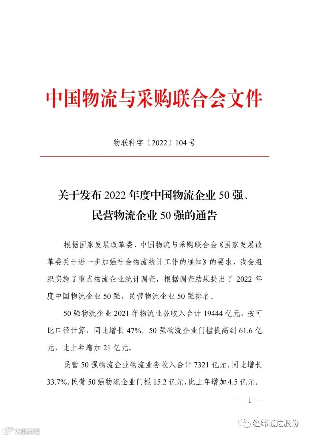 导读:2022年中国物流50强、民营物流企业 50 强的通告