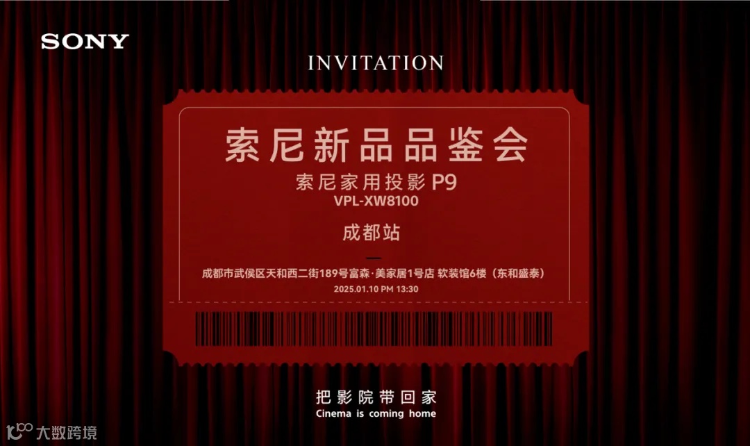 索尼4K激光家庭影院投影机旗舰新品——索尼家用投影P9(VPL-XW8100),自发布以来凭借其适用于投影机的XR图像处理器和4K HDR等强大功能,迅速成为影音行业的热点话题。索尼将走进成都东和盛泰,专为华西地区的影音行业从业人员和爱好者打造一场精彩纷呈的家影盛宴。就在2025年1月10日,成都,索尼诚邀业内人士和热爱家庭影院的朋友们到场一聚,亲身体验索尼家用投影P9的出色画质,共同领略电影艺术的巨大魅力,提前开启未来家庭娱乐的新篇章。无论是影院级的画面效果,还是先进的图像处理技术,就在索尼家用投影P9。