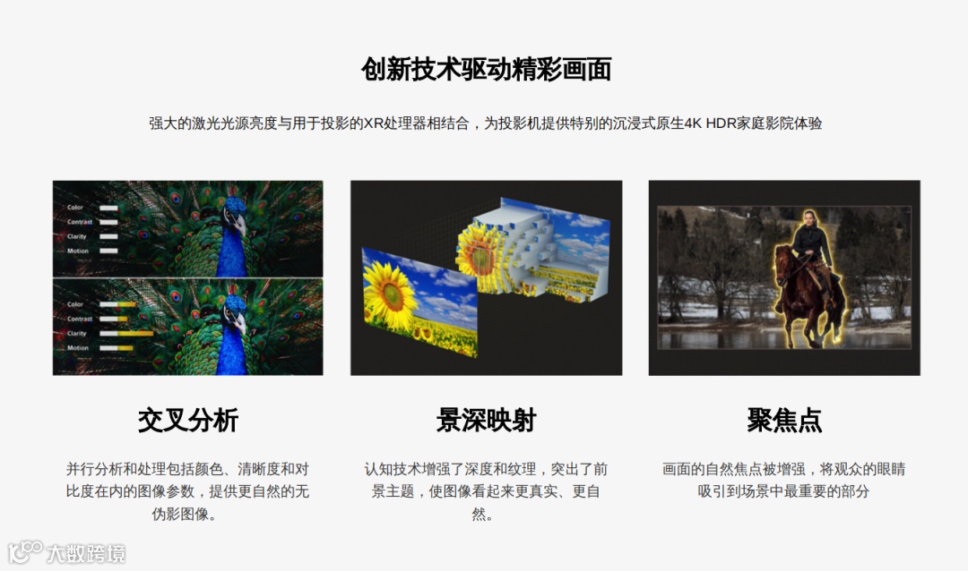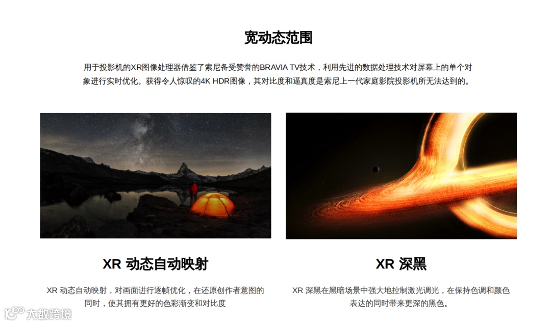 索尼家用投影P9作为索尼原生4K激光家庭影院投影机的旗舰机型,是继索尼电视9系、索尼电视8系和索尼电视7系以及索尼家庭影院产品陆续推出之后,索尼BRAVIA家影视听家族的又一款新品。索尼将家庭影院投影机、电视机、回音壁和其他家庭音频产品统一到“BRAVIA”一个品牌下,旨在为用户提供一站式服务,让他们既能享受到电影制作人精心打造的、色彩绚丽的画面,又能领略到足以引发共鸣的音效。
