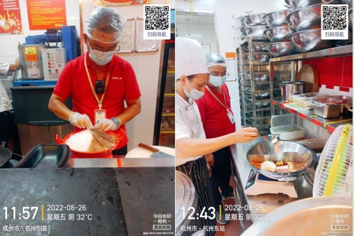 8月26日,谭鸭血厨政中心对杭州东站店开展巡检帮扶工作,针对门店出品标准及规范进行现场指导教学。