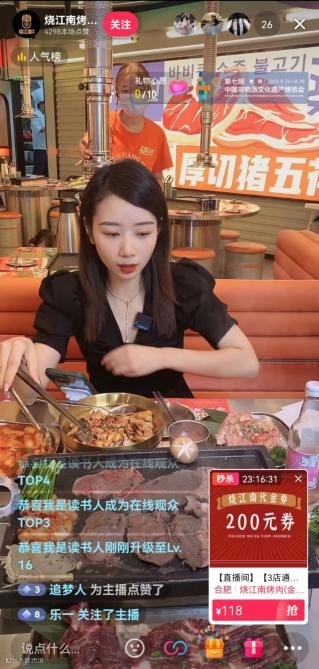 烧江南合肥门店通过抖音线上直播的形式进行了代金券的直播销售,为门店精准引流。