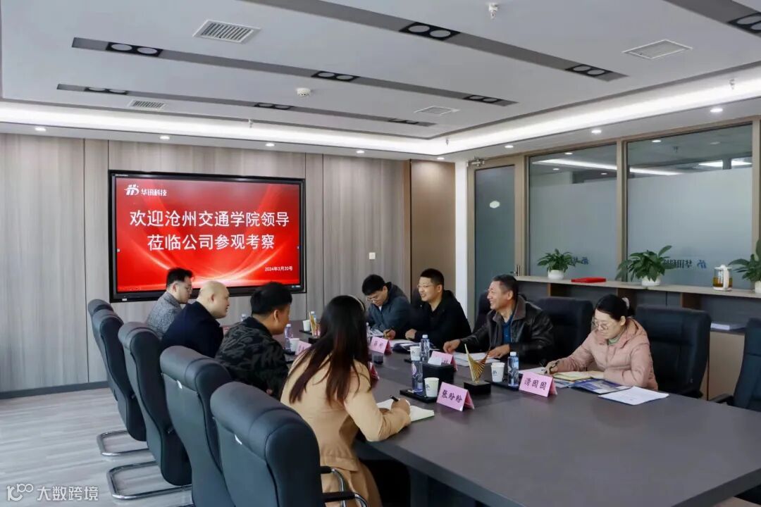 近日,沧州交通学院计算机与信息技术学院院长李乃祥,行政副院长薛彬,团委书记韩越超,大四年级组长滑园园一行莅临我司,就校企合作、建立实训基地等事宜展开深入洽谈。