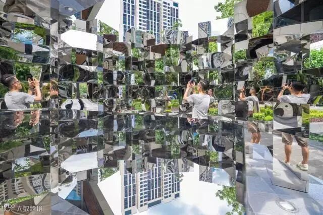 镜像是一个简洁并有力的装置艺术。对立方形镜子的利用改变了人们对地点的感知,并使访问者们从不同的角度探索身边的环境。