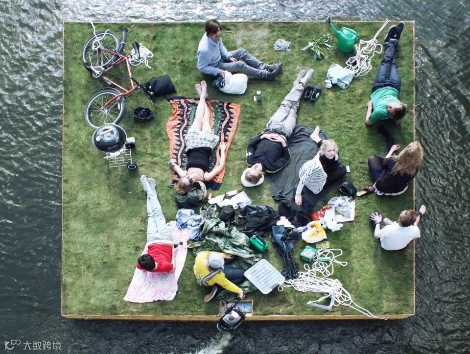 斯德哥尔摩是一座水城,当夏天来临时,这里所有的公园人满为患。于是当地设计公司Anders Berensson Architects决定建造一个漂浮的公园。最终的成品是一个5mX5m的漂浮结构,给它取了个名字叫“漂浮的草坪”。人们可以坐在上面自在的顺水漂流,享受灿烂的阳光和轻拂的微风。