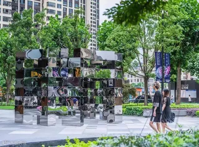 规格为3.5 x 5.5米,镜像是一个由反射立方体组成的圆柱体雕塑,堆叠在一起从而形成超现实的视觉体验。位于繁华的商业步行街,人们可以走进艺术品内部空间和无数的镜面近距离互动,体验与城市环境的碰撞。