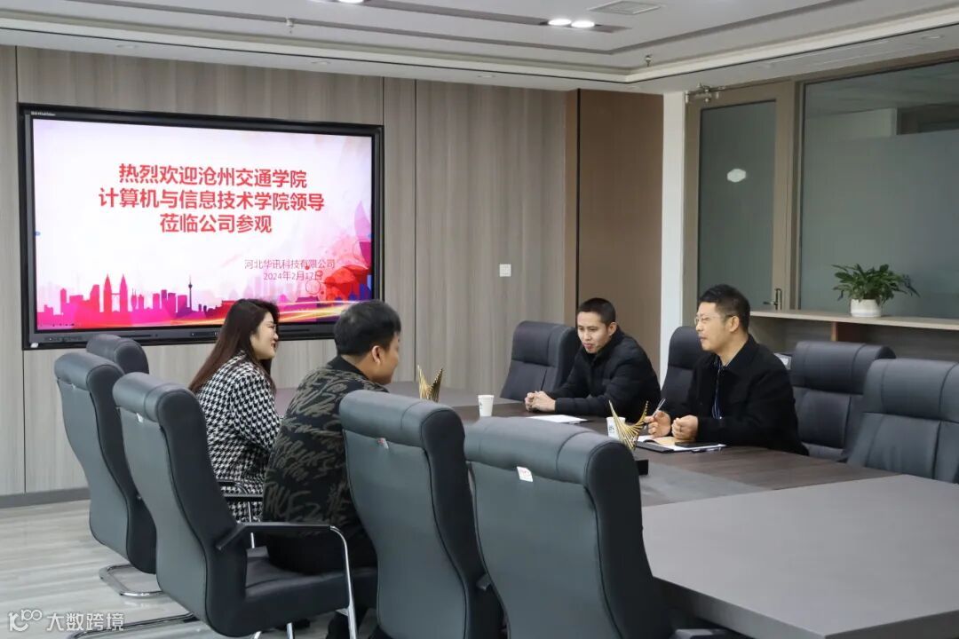 为促进产教融合,进一步提升校企合作成效,2月17日,沧洲交通学院计算机与信息技术学院韩院长等一行到我公司参观考察,双方就人才培养方案、专业建设、拓宽就业范围等方面进行了深度交流。