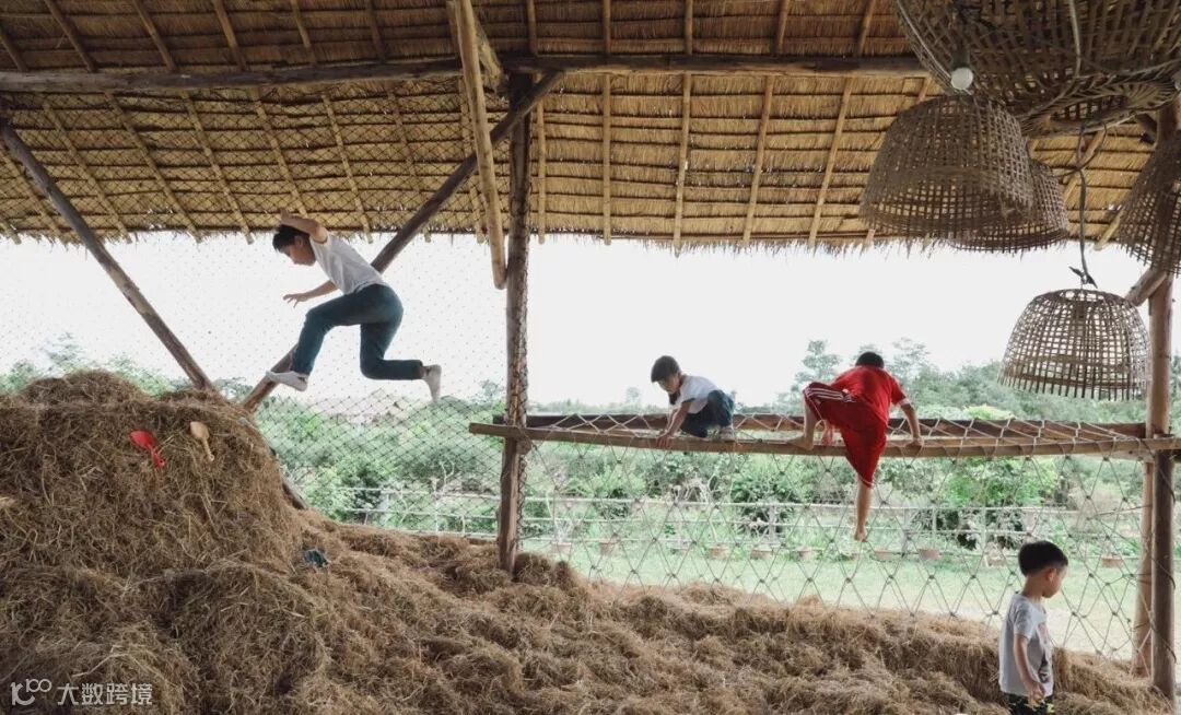 在景观设计上,GingerFarm也花费了很多心思。小朋友童年最爱的小木桩以及小竹桥随处可见,各种花样的遮阳棚体现出农场的人性化设计。