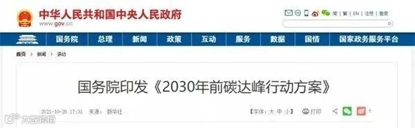 ▎碳达峰行动方案发布