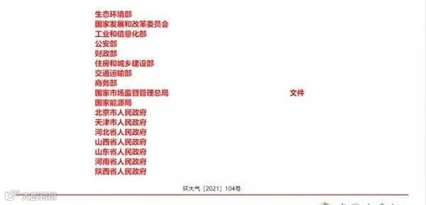 生态环境部、国家发展改革委等10部委以及北京市、河北省等7省(市)政府联合印发《2021-2022年秋冬季大气污染综合治理攻坚方案》,对京津冀及周边地区等重点区域今年冬天和明年春天的大气污染防治做了详细安排,明确了任务完成时限。