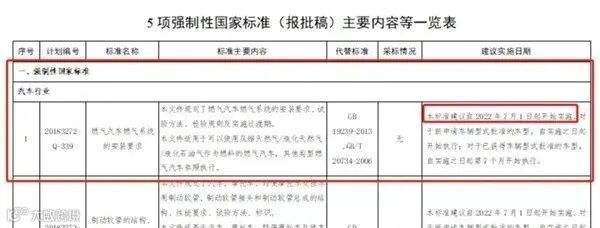 ▎2022年7月起天然气车实施新国标