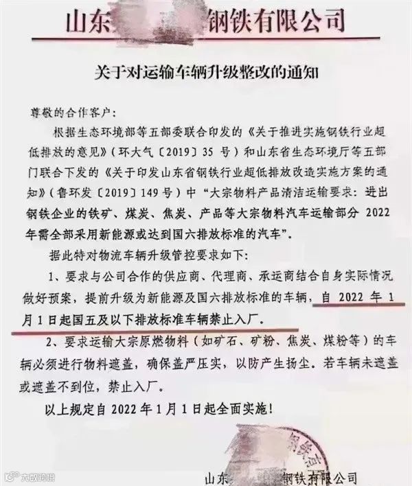 虽然这样的言论有一定道理,但是国五车和国六车之间并非只是单看成本进行购买,近期山东一钢铁集团下发的一纸文件,说明其中的一些问题。