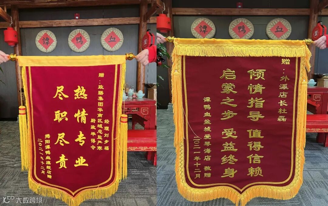 近日,谭鸭血运营中心分别收到了来自镇江区域门店、惠州区域门店、广东揭阳店、江苏盐城爱琴海店、安徽宿州泗县店赠予的感谢锦旗。对总部在巡检期间的工作给予了高度肯定和认可。