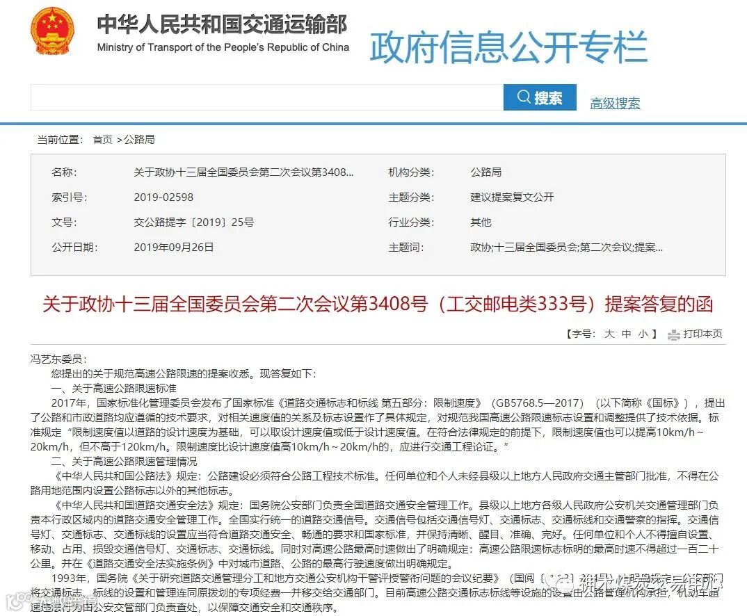 到2019年的政协十三届全国委员会第二次会议中,政协冯委员指出了“断崖式降速”“忽高忽低式限速”的现状,提出了规范高速公路限速的提案。