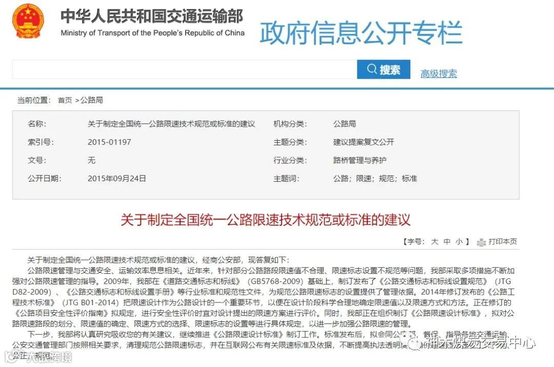从2015年底,交通部就关于限速不规范问题做出了研究,提出全国统一公路限速的新设想。