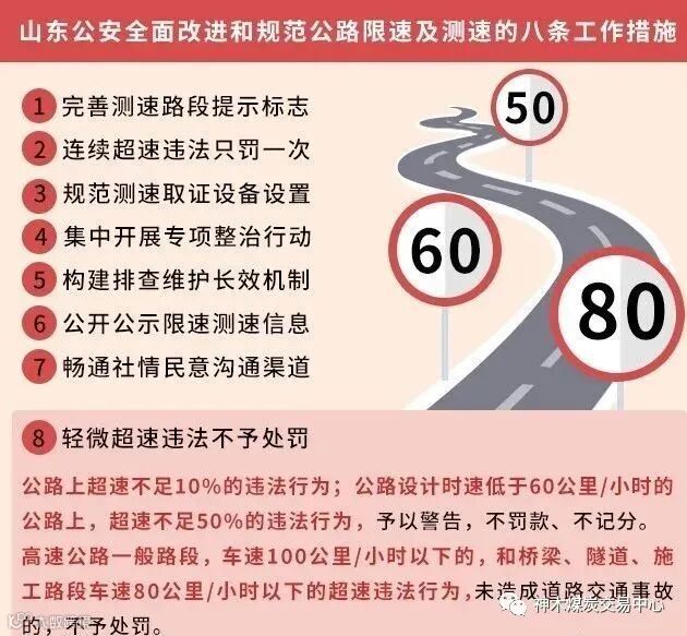 山东省公安厅曾出台《全面改进和规范公路限速及测速八条工作措施》,对高速公路限速问题做出了规范,限速值与前后差值超过20公里/小时的,提前预告或逐级限速,轻微违法不予处罚。