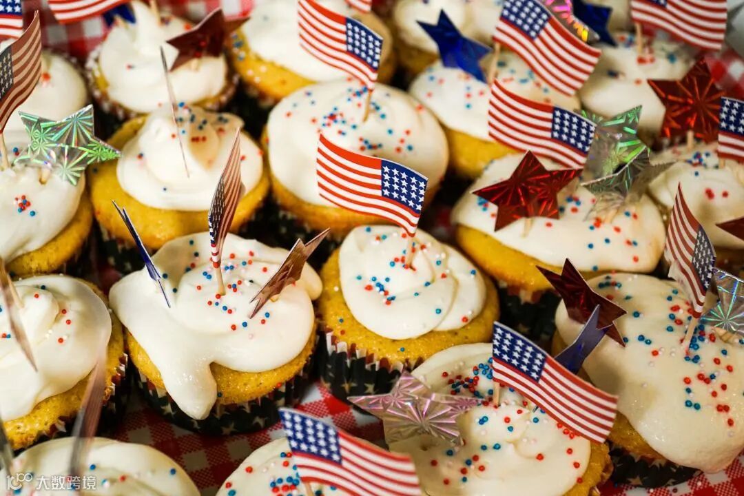 作为美国国旗的经典配色,红、白、蓝三色可以轻松打造出浓厚的独立日节日氛围感。如果您是餐饮店老板,则可以在独立日期间使用迷你国旗来装饰您的甜点和饮料,这些细节上的装饰更容易赢得顾客的好感和好评。