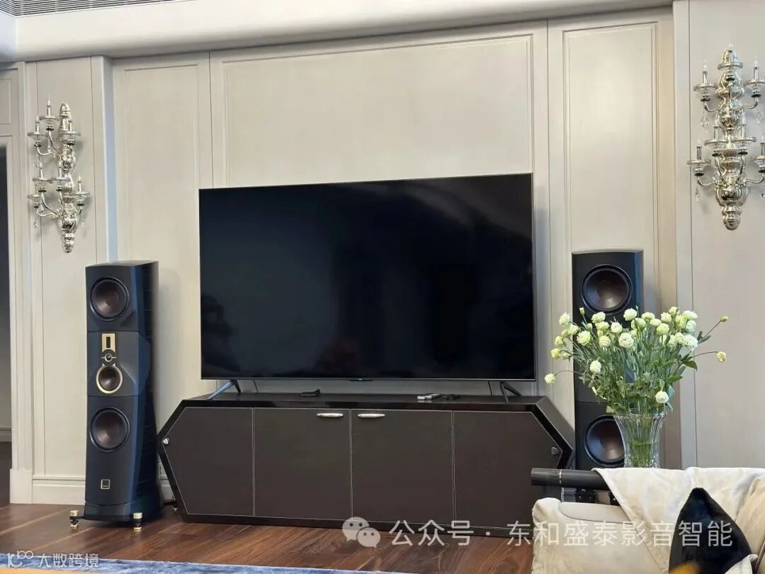 对于器材搭配的选择,以及喇叭摆放位置的调整,采用更能融入空间的摆法,用喇叭来提升整体空间质感。