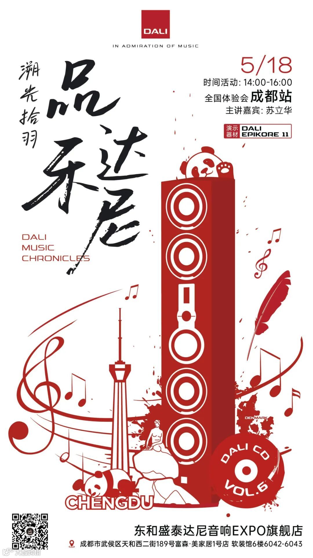 活动地点:成都市武侯区天和西二街189号富森·美家居1号店软装馆6楼6042-6043东和盛泰达尼音响EXPO旗舰店。