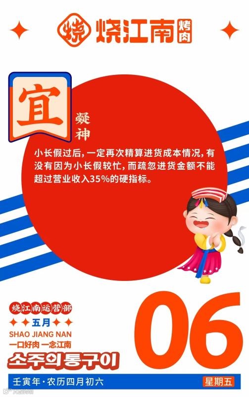 烧江南坚持每日更新品牌日历运营提示,以给到全国代理及加盟门店更多的运营赋能。