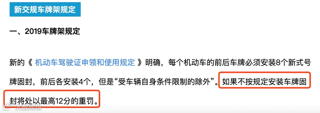 不论安装几颗螺丝,只要固封装置未破坏就不处罚,破坏后则按照“不按规定安装机动车号牌”进行处罚,一次记12分。