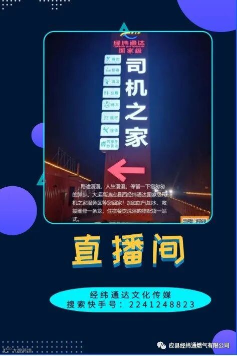 直播间成立以来他们先后开辟了《营销技巧》、《成功者的背后》、《司机交通优惠政策》、《弟子规》等栏目讲座、直播间紧紧相邻“经纬通达全国五A级司机之家”他们针对广大的货运司机群体积极为司机朋友们提供一手货源和最新的运费、油气价格等信息。直播间为了更好的服务司机朋友们他们经常收集交通优惠政策第一时间告知司机朋友。受到了广大司机朋友们的点赞。
