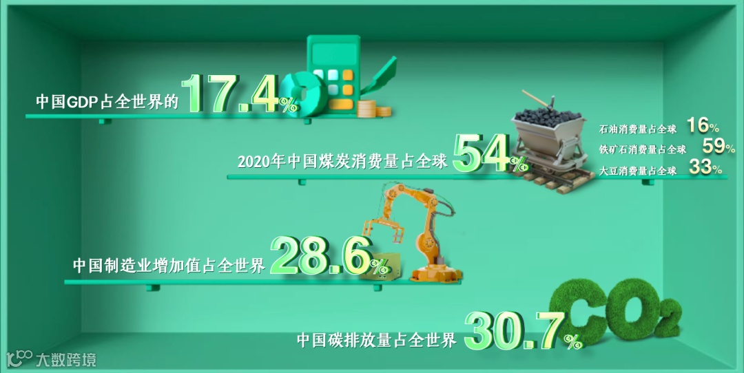 因为今天中国GDP占了全球17.4%,我们的碳排放量占到全球30.7%。