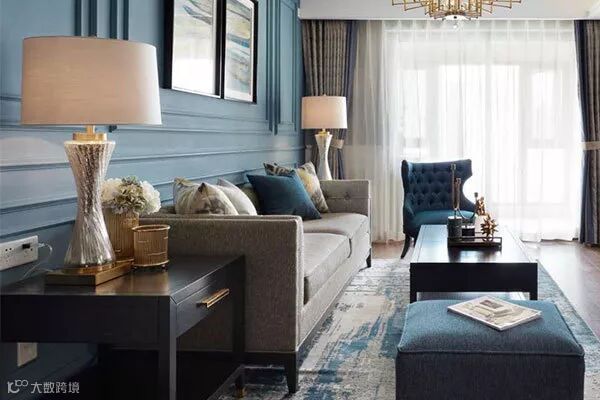 内敛高雅的棕蓝灰遇上不拘一格又略显奢华的美式风格后,将优雅大方四个字发挥的淋淋尽致!