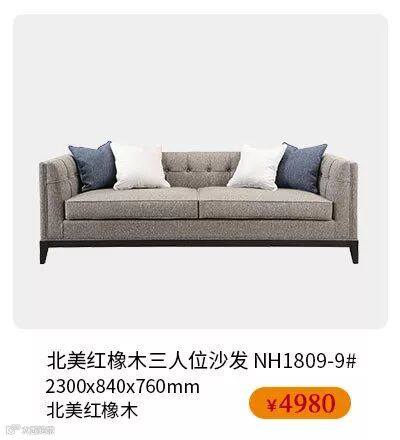沉稳大气的橡木布艺沙发,简单干净的线条在灰色软垫上游走,宽厚的扶手,传递出了厚重的安全感!