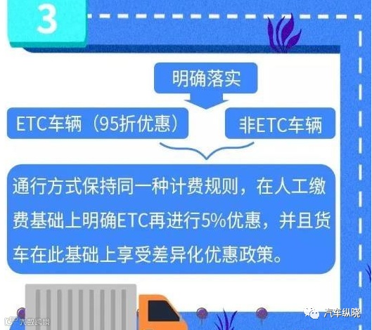 最后就是明确ETC的95折优惠,是在人工缴费的基础上再进行5%的优惠,切实为车主落实优惠。