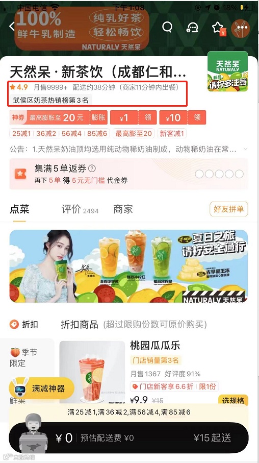 9月3日,天然呆成都仁和新城店美团外卖月销量突破9999单,成为天然呆首个外卖月售万单店,并荣获成都市奶茶热销榜第三名的好成绩。
