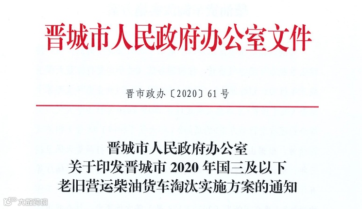 11月2日山西省晋城市人民政府办公室印发了《晋城市2020年国三及以下老旧营运柴油货车淘汰实施方案》的通知。通知中要求2020年12月31日前完成国家、省下达我市的国三及以下老旧营运柴油货车淘汰任务,大幅减少机动车大气污染物排放,推进晋城市环境空气质量持续改善。