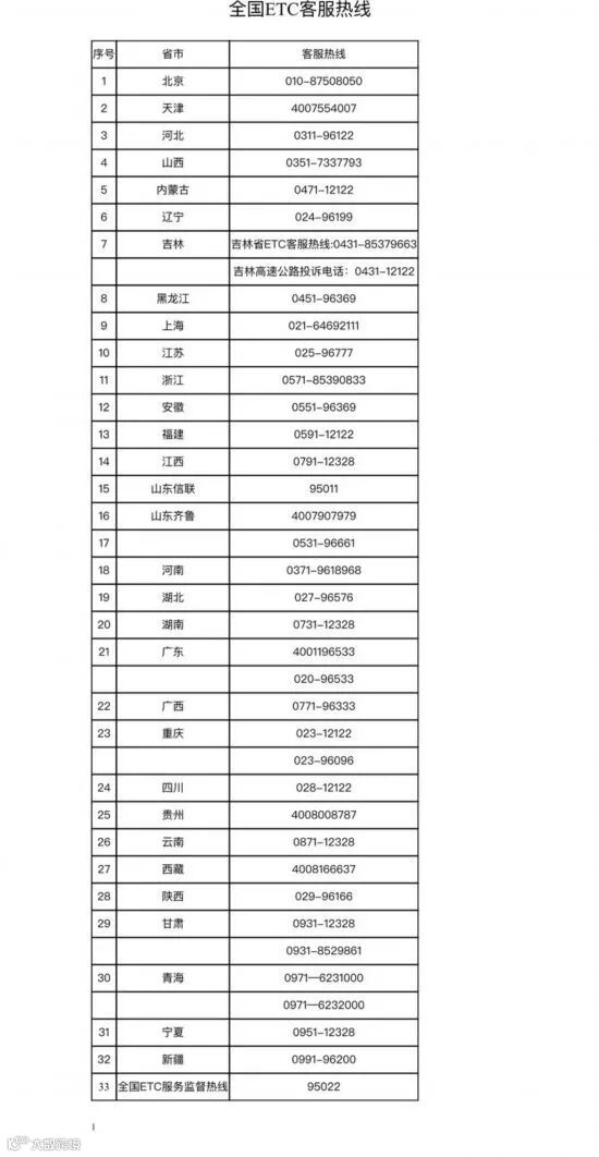附表:全网服务监督热线电话
