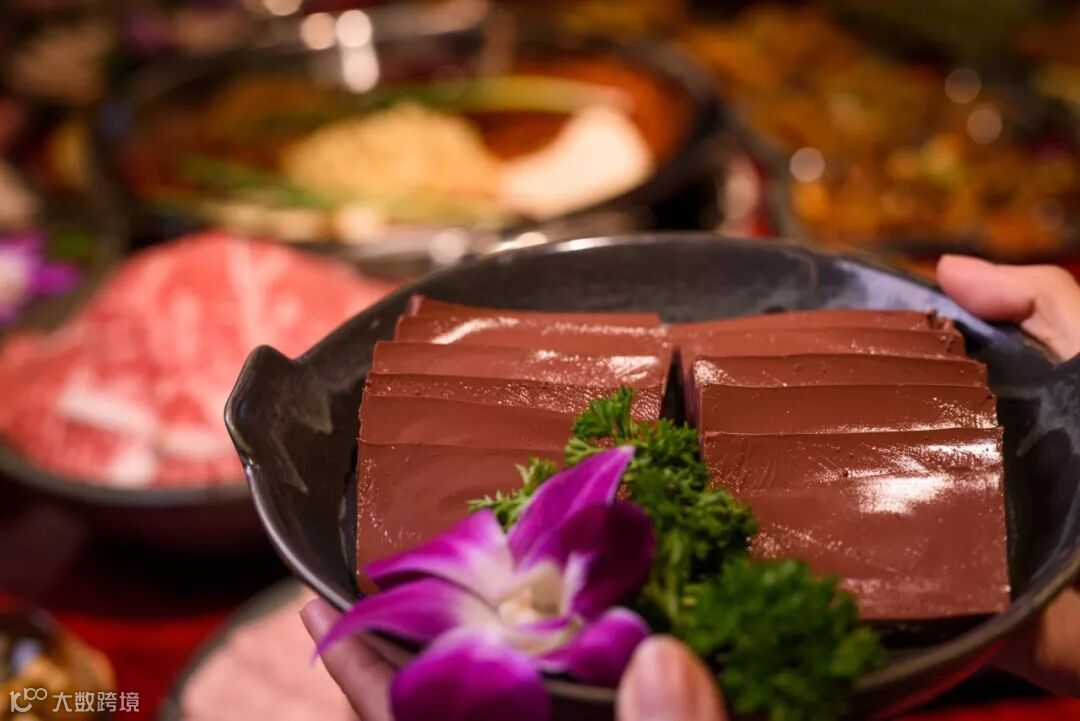 一口锅用传统工艺20度低温“紧”鸭血。鸭血整条下锅,加葱姜去腥味,是自然清新的香味。