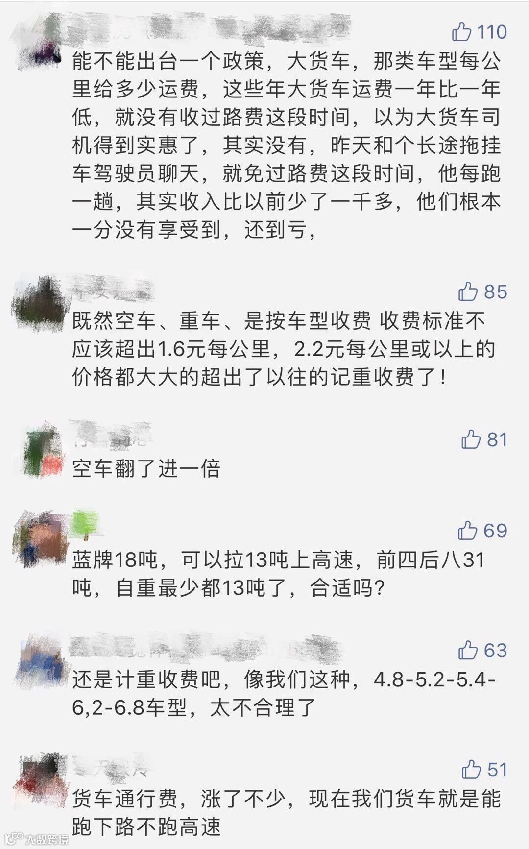 按轴收费以后,货车走高速空车也要多交钱,虽然交通部的本意是为了降低空载率,提高物流效率,但国内货运情况复杂,货运并没有按照交通部设想发展。希望代表们能看到了卡友们当前的困境,建议降低货车收费标准。