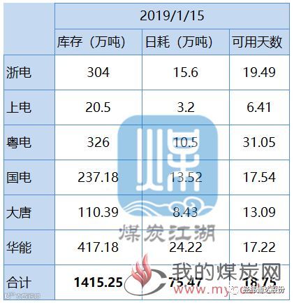 沿海六大电厂库存动态