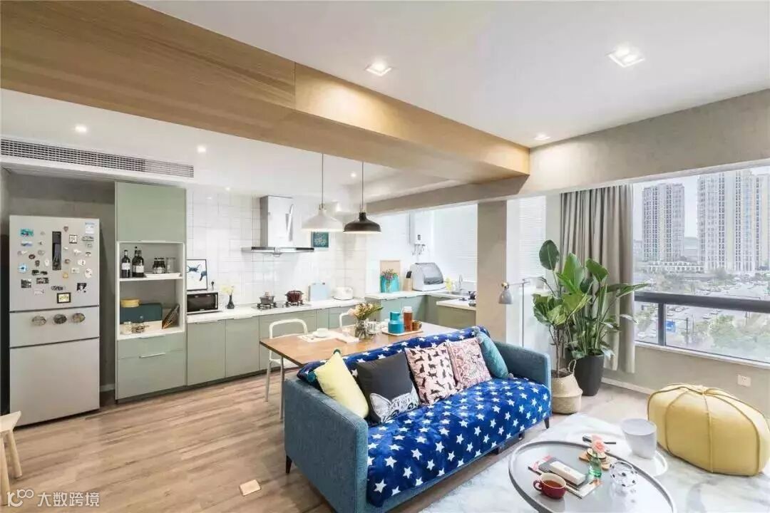 这样一来,沙发便成为了餐厅和客厅的分界线,起到了功能分区的作用。