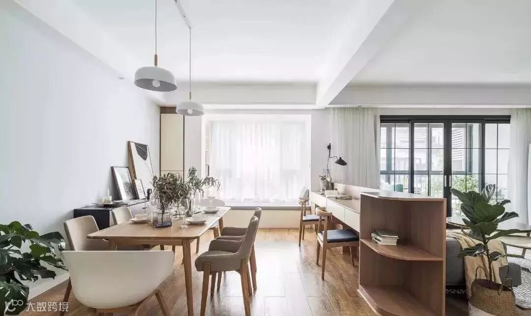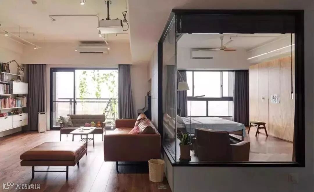 我们总会觉得家里房间不够,其实完全可以从客厅里“偷”。比如用玻璃隔出一个房间,搭配上窗帘,进可自成一室,保有隐私,退可引入光线,不影响客厅的采光和通透。